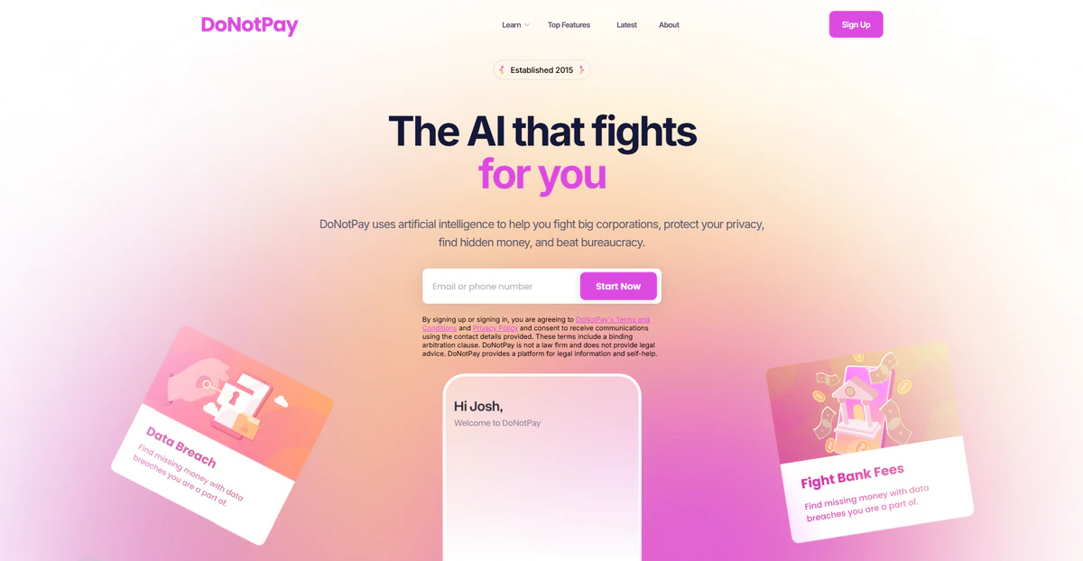 DoNotPay是一款人工智能法律服务平台,旨在通过低成本、便捷的方式为用户提供法律援助和解决方案。以下是其详细介绍:
