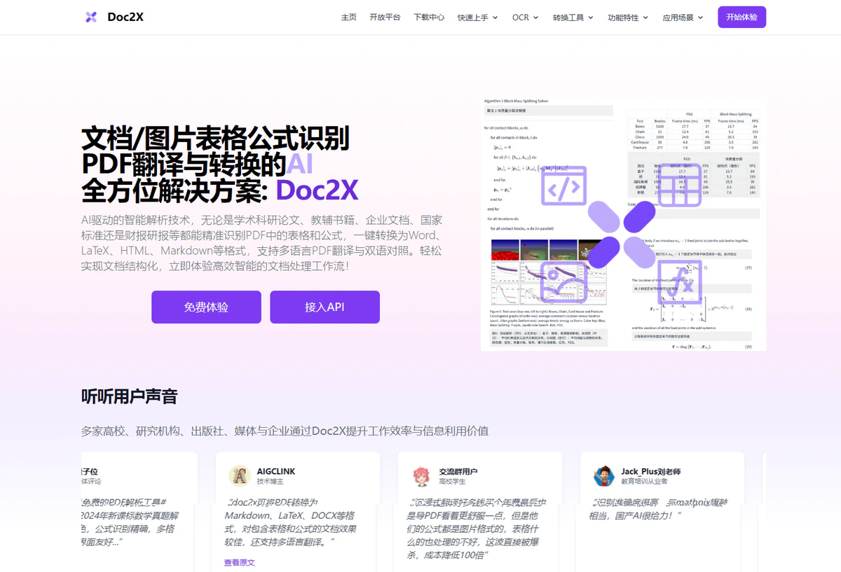 Doc2X是一款基于先进AI技术的在线文档处理工具,能够高效地识别和转换各类文档,广泛应用于学术、科研、企业数据处理和国际合作等场景。