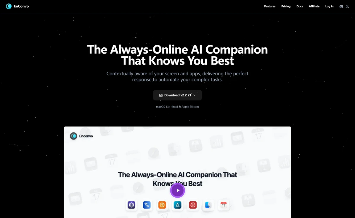 本网站提供的「Enconvo」相关内容均来源于网络搜集整理,不保证跳转外部链接的准确性和完整性。网站外部链接的内容在[2026-01-23]录入之前合规合法,后期网站的内容如出现违规或者损害了您的利益,可以直接联系网站管理员进行删除。如果涉及到金钱交易,请仔细甄别,避免上当受骗!