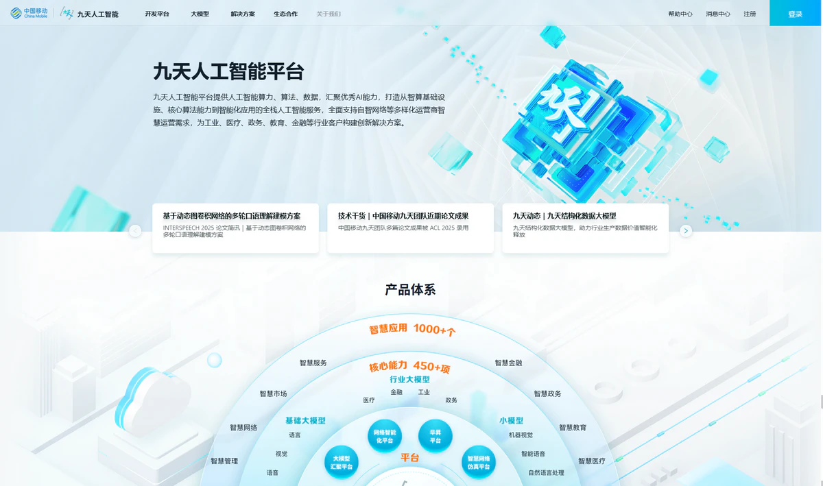 九天人工智能平台是中国移动旗下的全场景AI平台服务,旨在通过强大的AI技术和服务能力,助力企业和开发者实现智能化转型。以下是其详细介绍: